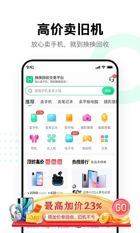 1、新人注册即送890加价劵,让你的旧手机卖个更高的价格;