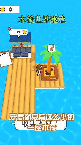 1、木筏世界建造有很多有趣的内容,乘坐小木筏去到不同的地方冒险,去砍伐更多树木吧。
