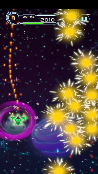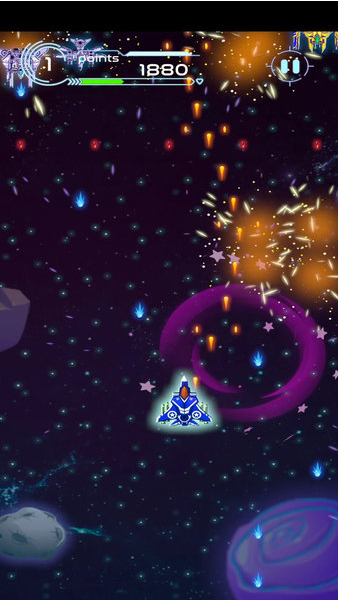 为实战空间背景射击手机游戏,玩家可以任意选择宇宙战机,只要完成更大的关卡,就能解锁更高级别的宇宙飞船。