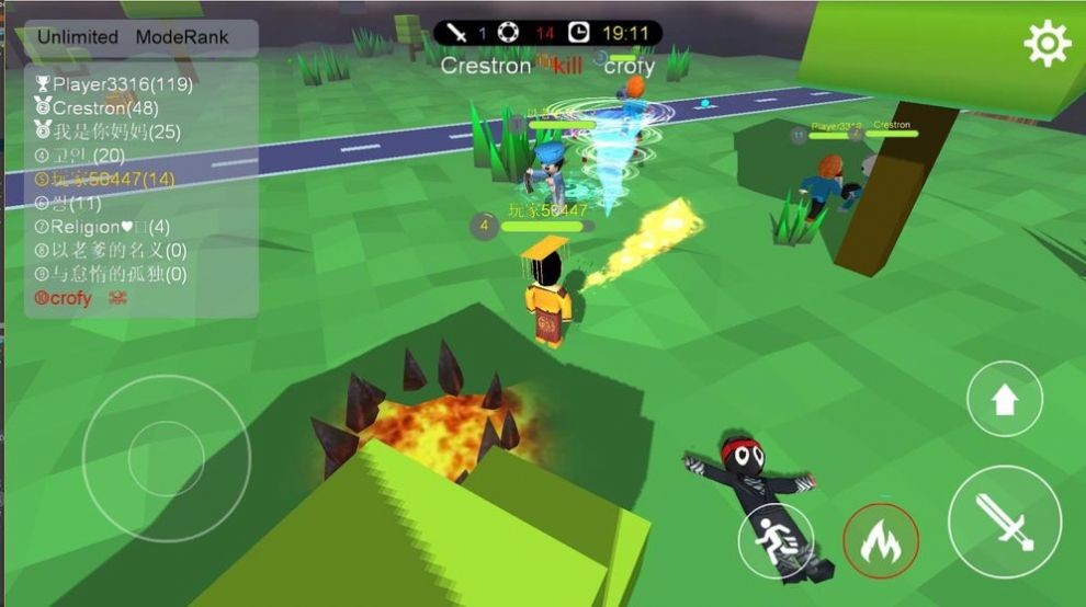 3.3D视角,超大场景,自由奔跑跳跃,实时战斗,真实物理碰撞,非常的完美。