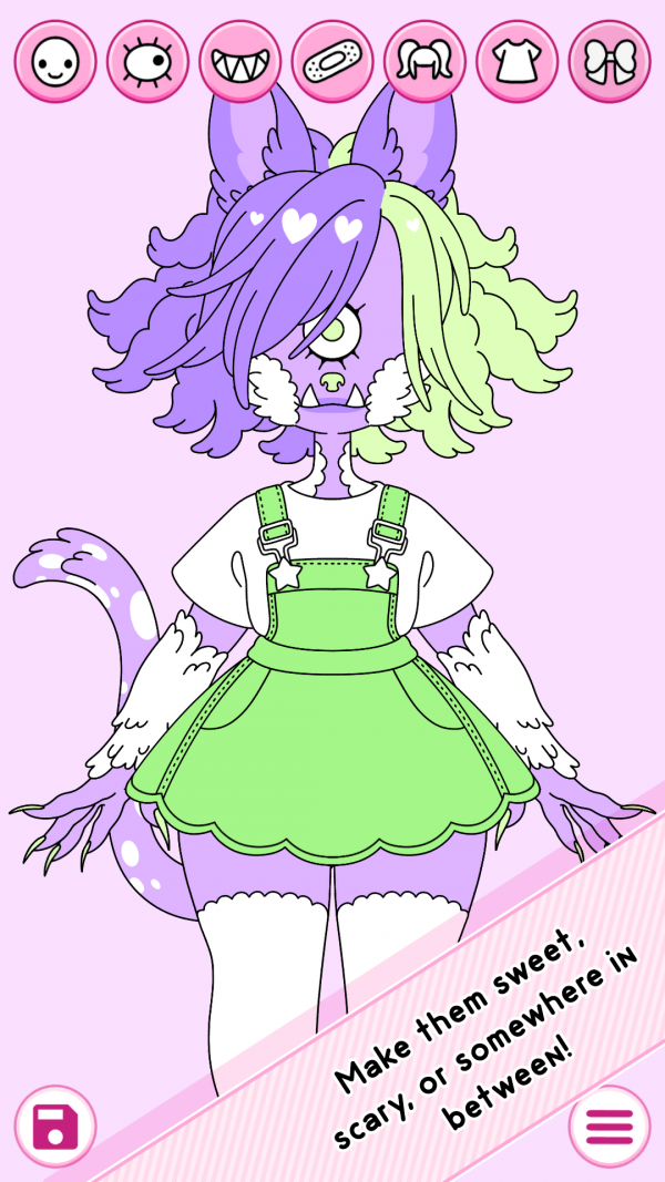 3、你可以对怪物女孩子的身体、脸、服装、首饰、发型等众多方面进行重塑。