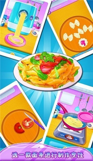 制作意大利面是非常新颖的美食制作游戏,在这里你需要根据游戏中的步骤,一步步的来制作出美味的意大利面,游戏画面非常的精美,并且操作也十分的简单哦,非常适合打发时间玩。