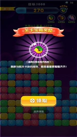 消除星星乐是非常适合闲暇时间玩的休闲游戏,在这里你只需要将游戏中的星星消除即可,游戏玩法非常的简单,并且这里还有多种道具供你使用,让你轻松通过关卡哦。