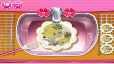 2,厨房太脏了,来帮忙清理吧,把容器和罐子放好,固定水管,变质的食物扔进垃圾桶,擦地板,用可爱的磁铁装饰冰箱。