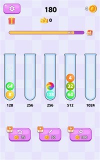 玩家需要操作小球在游戏中去移动,选择最合适的方法,对瓶子中的小球排序,按照顺序来排列整齐,这样就能完成挑战,成功过关,还能赢下丰厚的奖励。