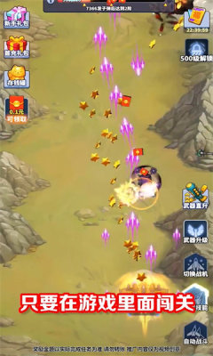 2、通关之后,甚至有机会获得到红包奖励,购买更多的武器和升级你的战机;