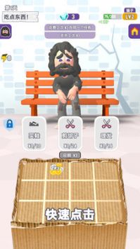 个流浪汉,通过点击屏幕可以让流浪汉举起牌子,通过一直点击屏幕,可