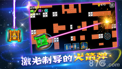 2. 在战斗中,玩家需要躲避敌人的攻击,同时发射炮弹摧毁敌人坦克。