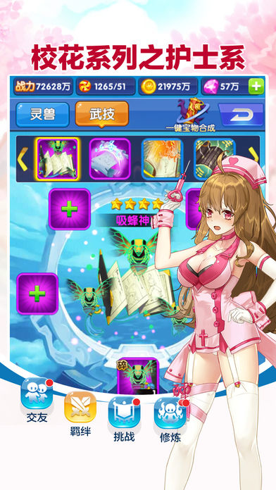 校花的贴身高手手游是一款少女修仙养成手游,是根据知名白金作者鱼人二代同名人气网络小说《校花的贴身高手》改编而成。游戏摒弃传统手游玩法, 独创类卡牌ARPG游戏系统,融合多种创新特色玩法,并百分百重现小说中精彩的校园故事 。